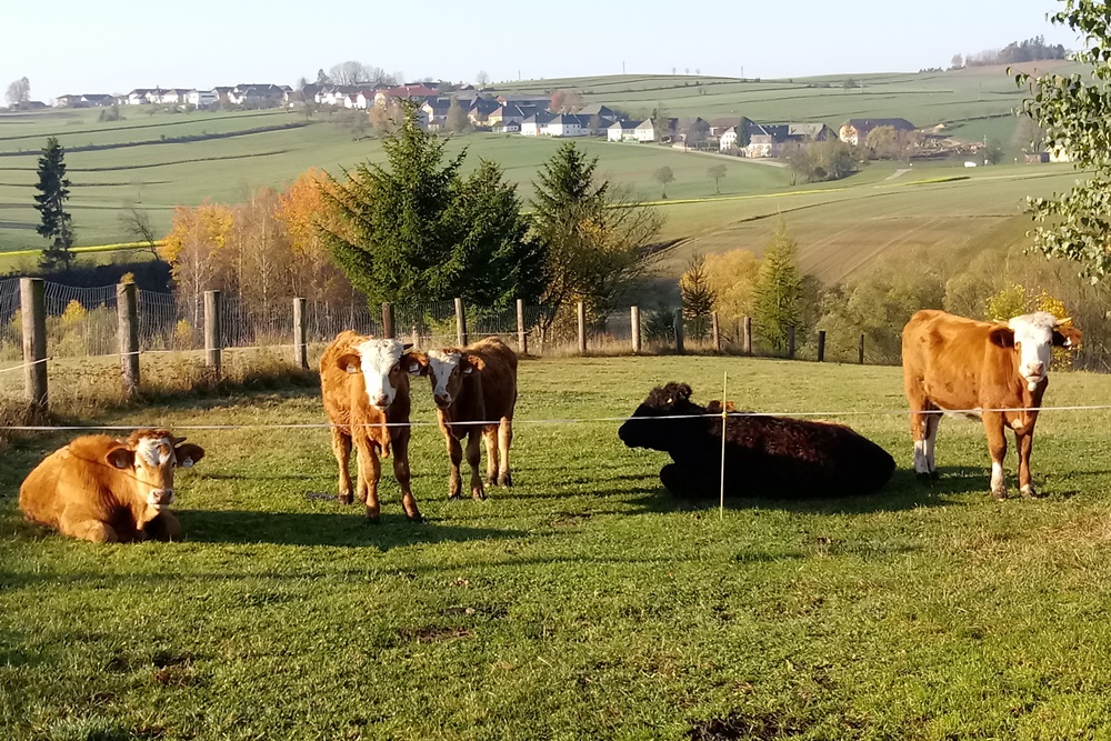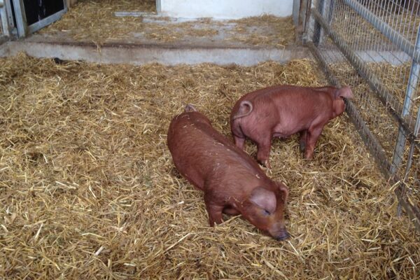 Unser Schwerpunkt liegt auf der Schweinezucht und -mast. Die Ferkel werden bei uns geboren und wachsen in Gruppen in voll eingestreuten Ställen mit Auslauf auf. Unsere Rinder beziehen wir als Kälber aus der Region und bieten ihnen ganzjährig Zugang zur Weide. Zudem gehören Bio-Legehennen, ein Hund, Katzen und Hasen zu unserem Hof.